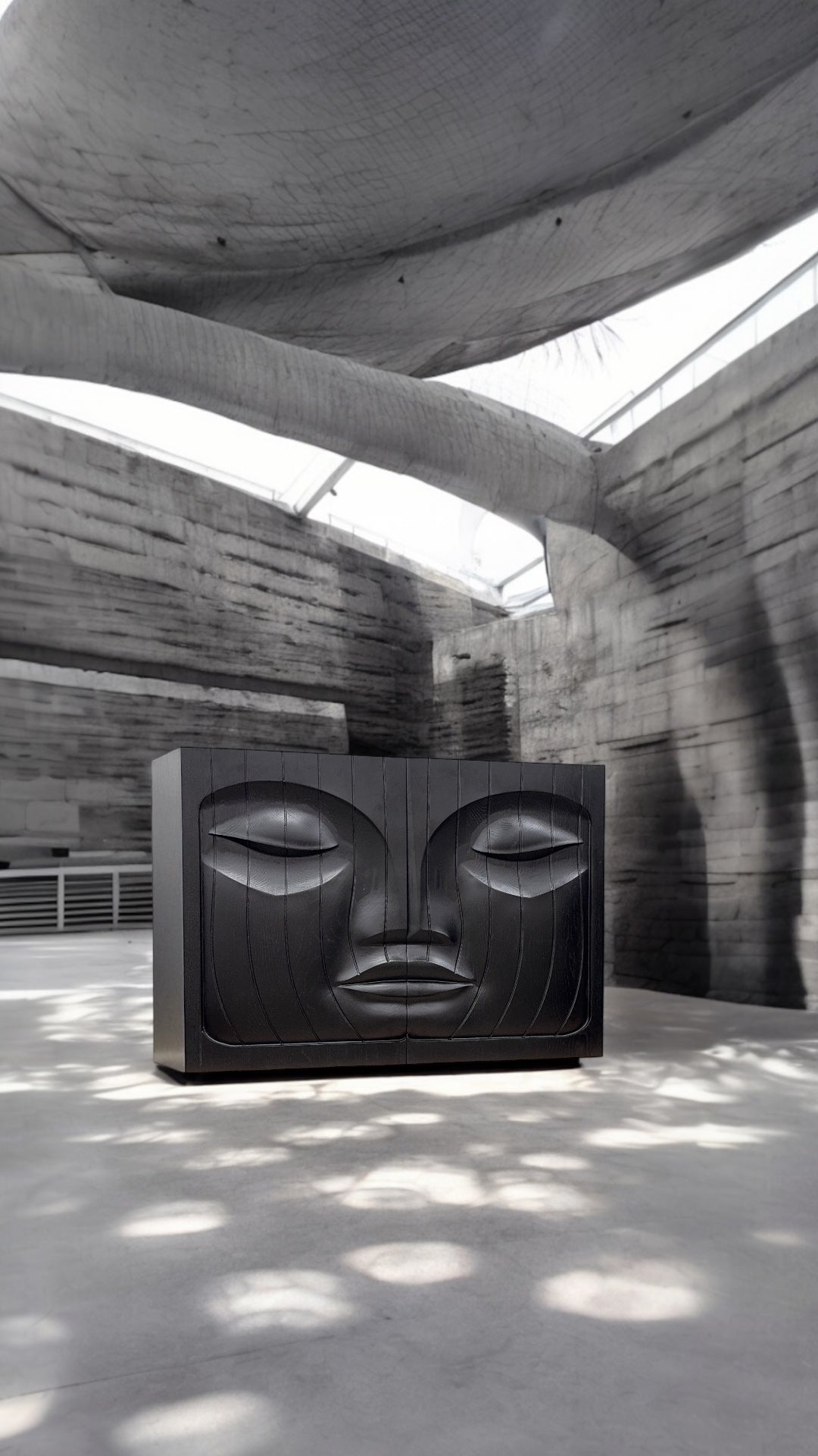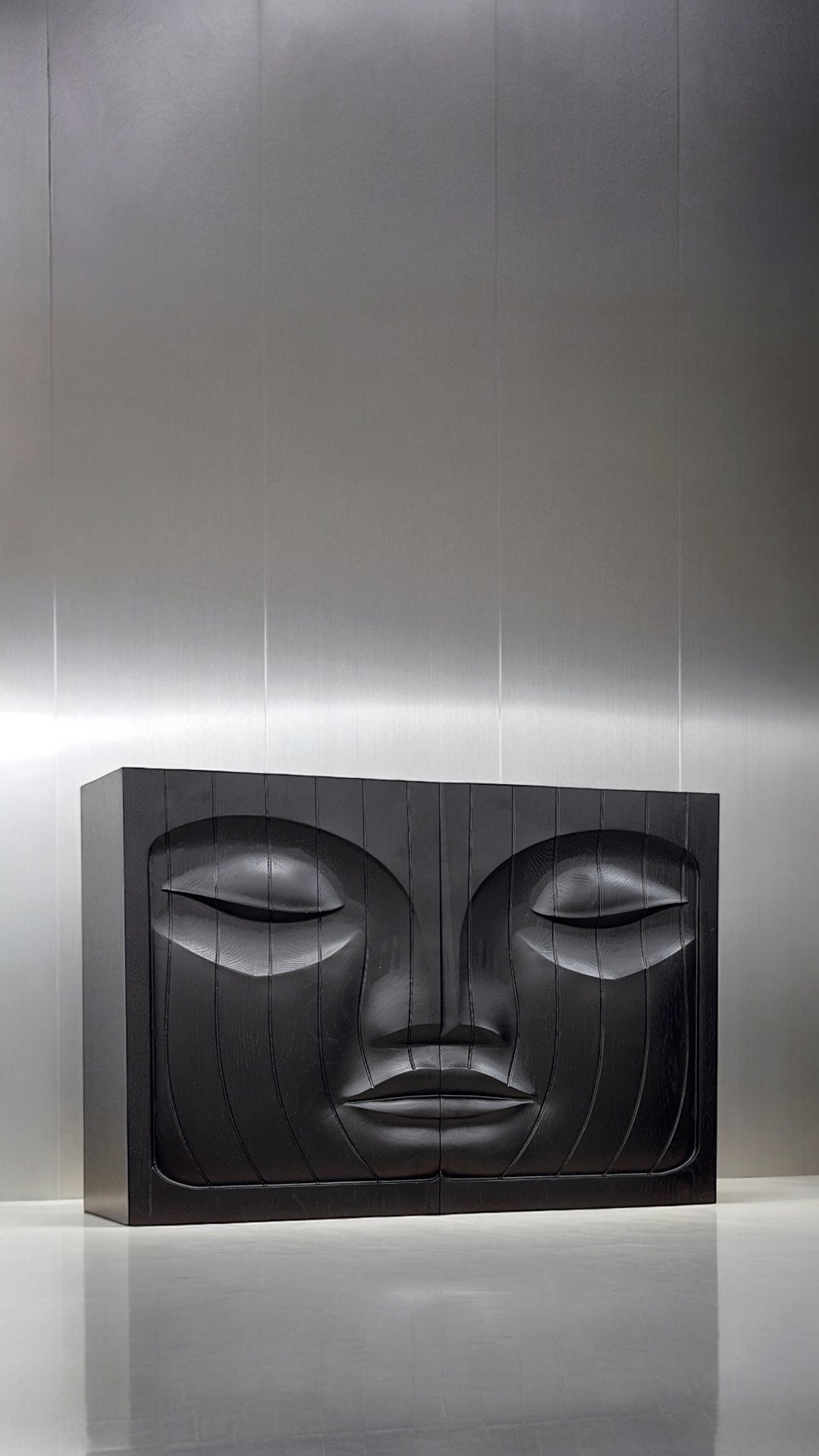 Inspired by the sacred philosophy of Ori Inu and Ori Olokun aesthetics. These works are more than furniture-they are meditations in form. Vessels of reverence. Altars of stillness. Each carved face tells a story of heritage, identity, and divine reflection.